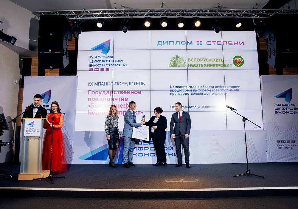 В период с декабря 2022 по январь 2023 года государственное предприятие «Белоруснефть-Нефтехимпроект» принимало участие в Республиканском профессиональном конкурсе на соискание премии за достижения в области цифровизации и цифровой трансформации «Лидеры цифровой экономики - 2022». Организатором конкурса выступил центр поддержки предпринимательства «Деловые медиа». Данный центр является также организатором ряда республиканских конкурсов и премий: «Лидеры в строительстве Республики Беларусь» (с 2004 года), «Лидер энергоэффективности Республики Беларусь» (с 2015 года), а также специализированных форумов и выставочных проектов в сфере энергетики, ЖКХ, строительства, промышленных технологий, IT-технологий, технологий «умного города».