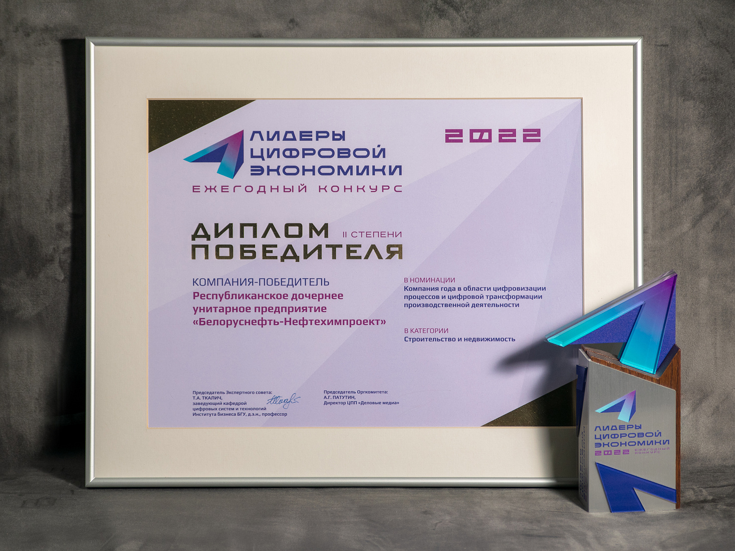 Результаты участия государственного предприятия «Белоруснефть-Нефтехимпроект» в первом Республиканском профессиональном конкурсе на соискание премии за достижения в области цифровизации и цифровой трансформации «Лидеры цифровой экономики - 2022»
