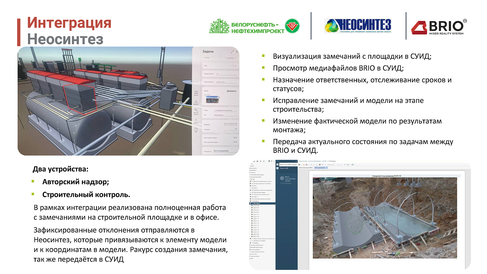 Устройство БРИО МРС работает на базе очков смешанной реальности (аналог Microsoft HoloLens), но адаптировано под специфику строительства и имеет специализированное программное обеспечение , ориентированное на российские стандарты и проектирование.
