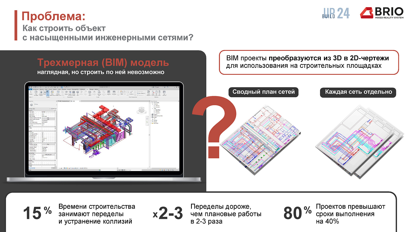 БРИО МРС — это российская технологическая компания, разработчик программно-аппаратного комплекса (ПАК) для цифровизации и повышения эффективности строительства на основе BIM-моделирования (информационного моделирования зданий и сооружений) . Компания специализируется на создании решений, которые позволяют внедрять технологию смешанной реальности (Mixed Reality, MR) на строительных объектах, напрямую интегрируя цифровую модель с реальным окружением. Ключевая цель компании — сократить сроки строительства, снизить количество ошибок и переделок, повысить качество монтажа и сократить контроль за ходом работ.
