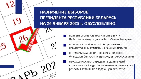 Свое будущее белорусы определят 26 января 2025 г. Именно на этот день Палатой представителей Национального собрания назначены выборы Президента Республики Беларусь.