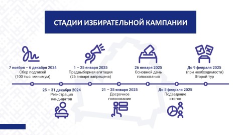 С 1 по 25 января 2025 г. будет проводиться предвыборная агитация, самый активный и ответственный этап избирательной кампании. В день голосования, 26 января, агитация запрещена законодательством.