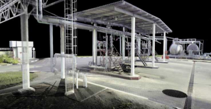 Лазерное сканирование – самая надёжная технология, позволяющая получить точную цифровую копию промышленного объекта. Облако точек дает возможность выполнить визуальную оценку объекта, измерения между любыми (даже труднодоступными) конструктивными элементами сооружения без непосредственного присутствия специалиста.