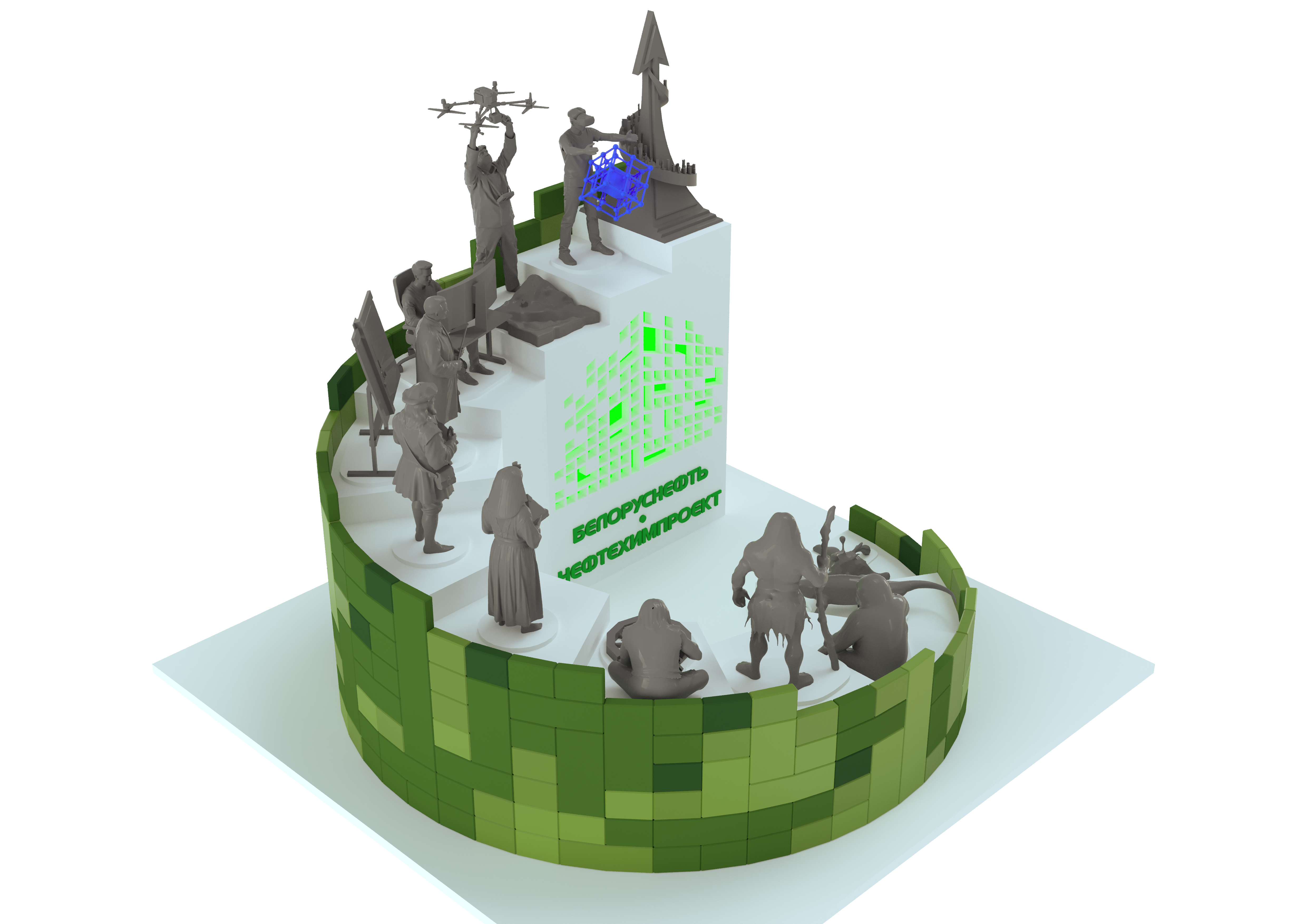 Она призвана визуализировать корпоративный принцип государственного предприятия «Белоруснефть-Нефтехимпроект»: постоянное развитие и совершенствование профессии невозможно без опоры на исторический фундамент и взгляда в будущее.