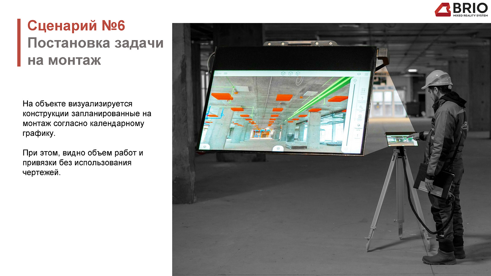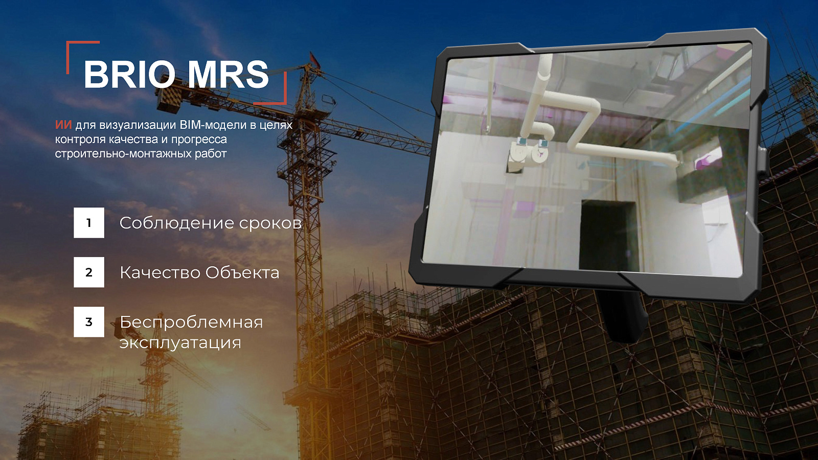 БРИО МРС — это российская технологическая компания, разработчик программно-аппаратного комплекса (ПАК) для цифровизации и повышения эффективности строительства на основе BIM-моделирования (информационного моделирования зданий и сооружений) . Компания специализируется на создании решений, которые позволяют внедрять технологию смешанной реальности (Mixed Reality, MR) на строительных объектах, напрямую интегрируя цифровую модель с реальным окружением. Ключевая цель компании — сократить сроки строительства, снизить количество ошибок и переделок, повысить качество монтажа и сократить контроль за ходом работ.